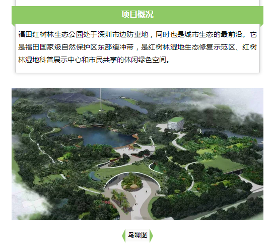 福田紅樹林生態公園的建成,使南部香港米埔自然保護區、東部的深圳河口、西部的福田國家級自然保護區、深圳灣公園實現生態一體化聯接,形成了一片無界綠地,完成了一次重大的城市生態修復。公園目前共有紅樹植物9科16種,濕地鳥類194種,其中23種為珍稀瀕危物種,如卷羽鵜鶘、黑臉琵鷺和白琵鷺等,每年有10萬只以上候鳥在此停歇。