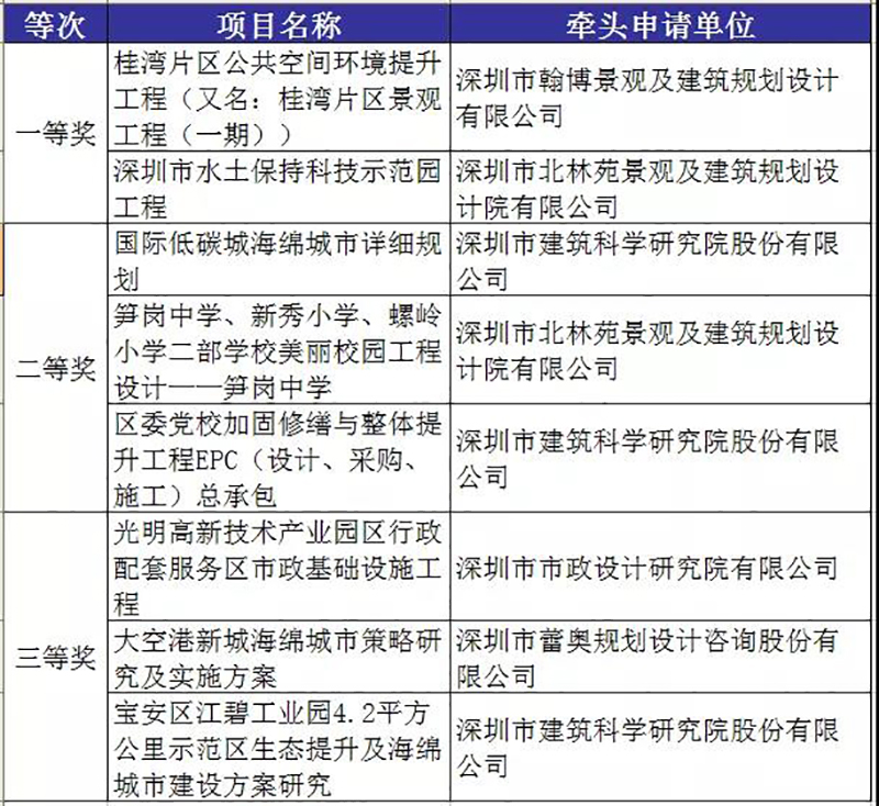 為鼓勵全社會遵循“生態優先”,調動社會資本參與海綿城市建設,展示深圳市海綿城市建設成果,深圳市水務局主辦了2019海綿城市建設資金獎勵項目評選活動,設置了社會資本新建項目配建海綿設施獎、海綿城市建設項目優秀規劃設計獎、海綿城市建設項目優秀施工獎、海綿城市建設優秀研究成果獎和海綿城市研究機構(平臺)設立獎。近日,評選結果公布。在海綿城市建設項目優秀規劃設計獎評選中,北林苑參與的深圳市水土保持科技示范園工程和筍崗中學、新秀小學、螺嶺小學二部學校美麗校園工程設計-筍崗中學兩個項目雙雙獲獎。