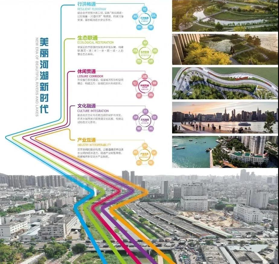 同時,積極探索建設理念,以碧道建設統籌生產、生活、生態三大要素,倒逼產業結構轉型、用地結構調整、居住條件改善、服務功能升級,推動沿線休閑游憩設施、文化消費設施、交通和市政設施建設、舊工業區與城中村更新等,最終達到流域生態環境優美,空間綜合利用、產業轉型升級、流域價值激活的發展目標,探索出一條生態、經濟、文化、社會協調發展的新模式與新路徑,將深圳市碧道打造成為“河湖+產業+城市”綜合治理開發的樣板區。
