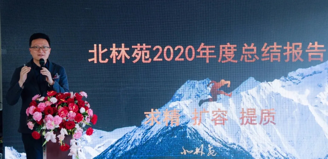 會議伊始,北林苑董事長李浩致辭,他代表公司對全體員工在過去一年的辛苦付出與不懈努力表示真摯感謝,并提前祝大家新春愉快。他在致辭中提到: