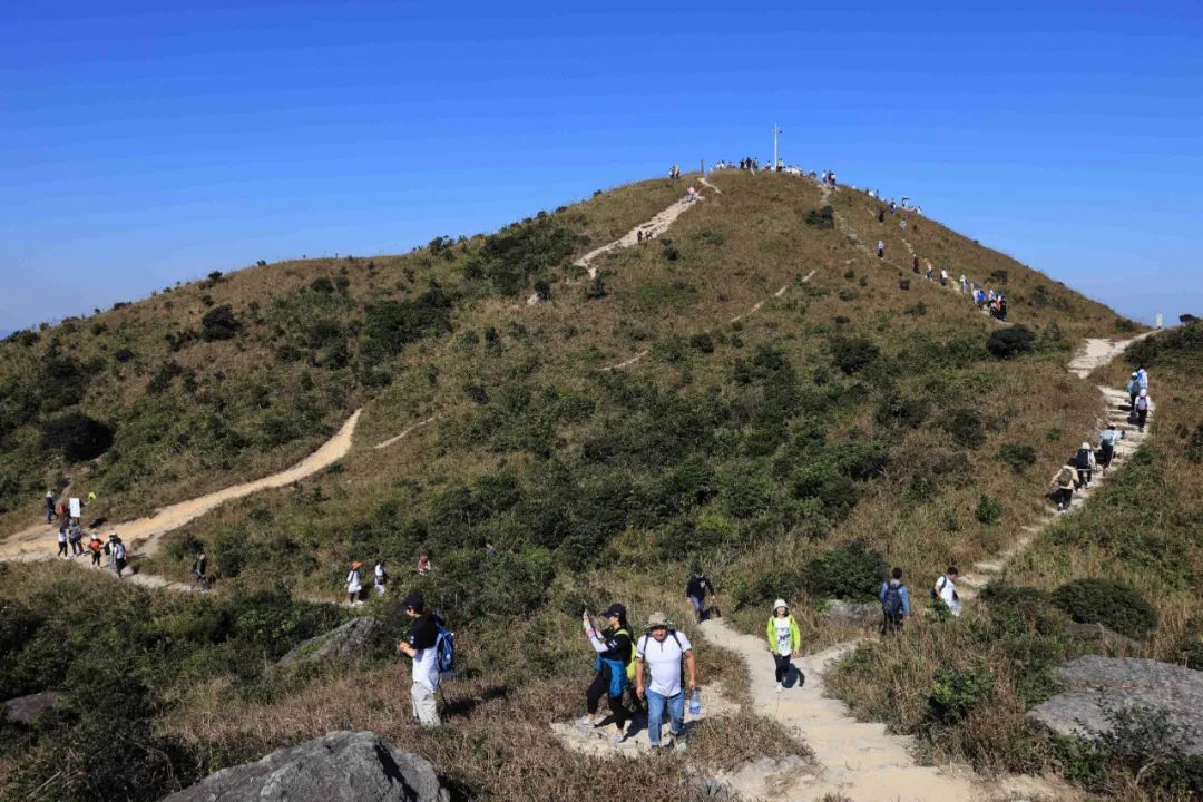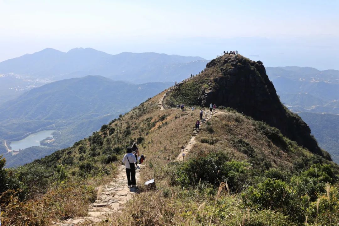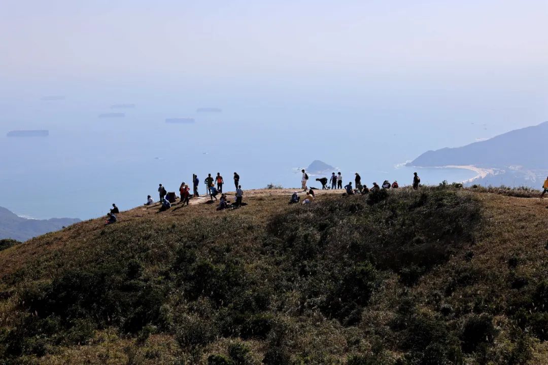 沿途的棧道、觀景平臺、涼亭、活動廣場等景觀節(jié)點,充分利用原山石、林木、山澗、海洋等自然環(huán)境,成為了極佳的網(wǎng)紅拍照打卡點。頂峰三面環(huán)海,草甸遍布,可近觀火山熔巖痕跡,可遠眺大雁頂、排牙山、大鵬灣、楊梅坑、東西涌、三門島、大小甲島等,超五星的270度無敵海景,隨手一拍,每一幀都是手機壁紙。